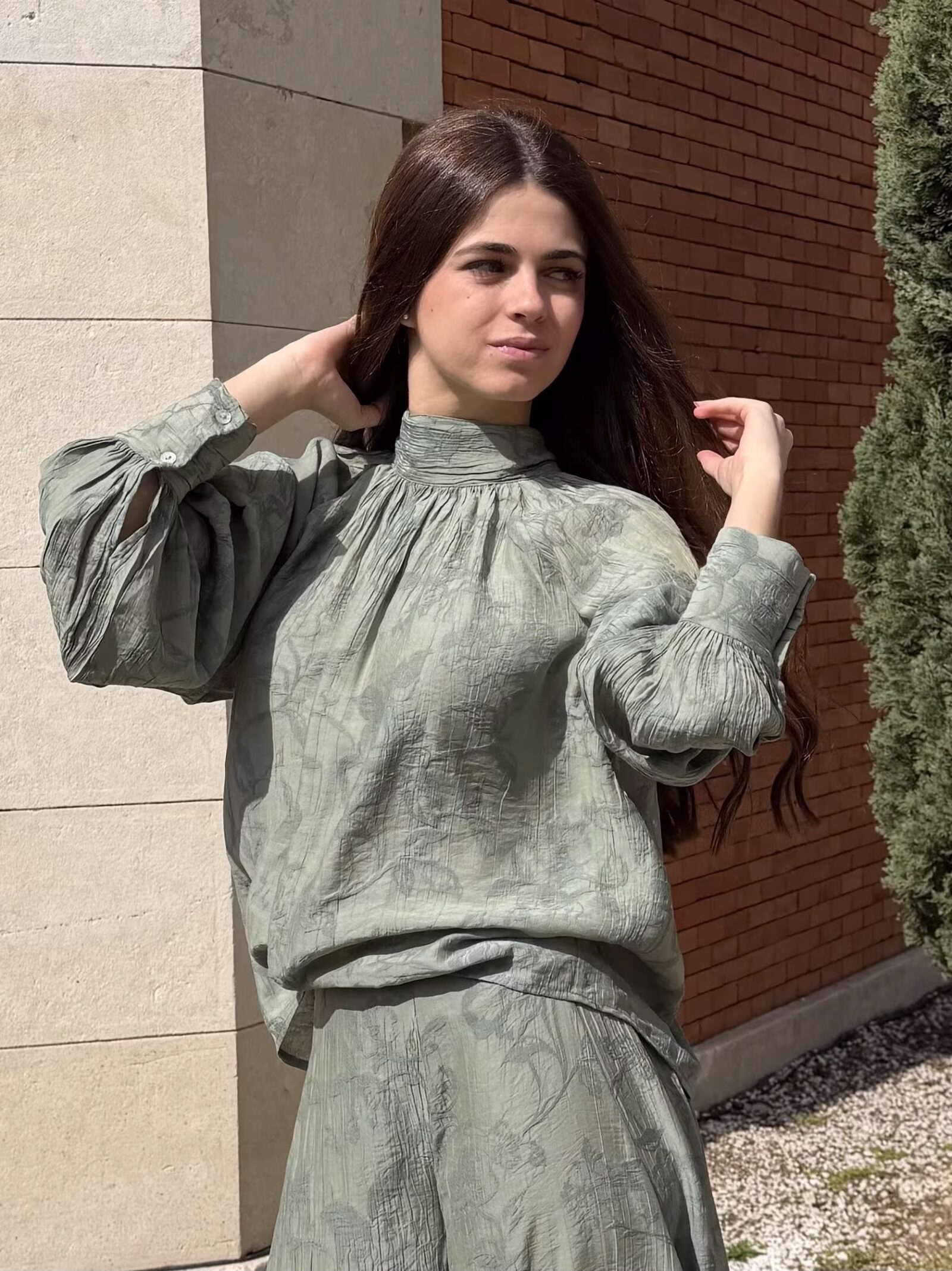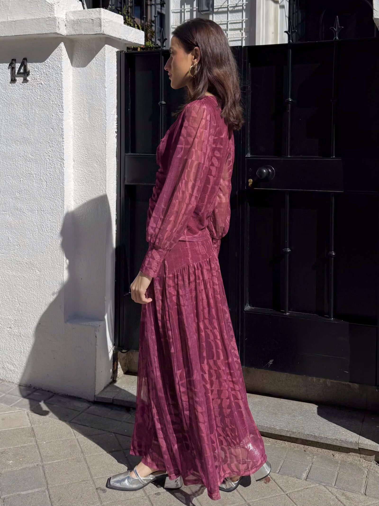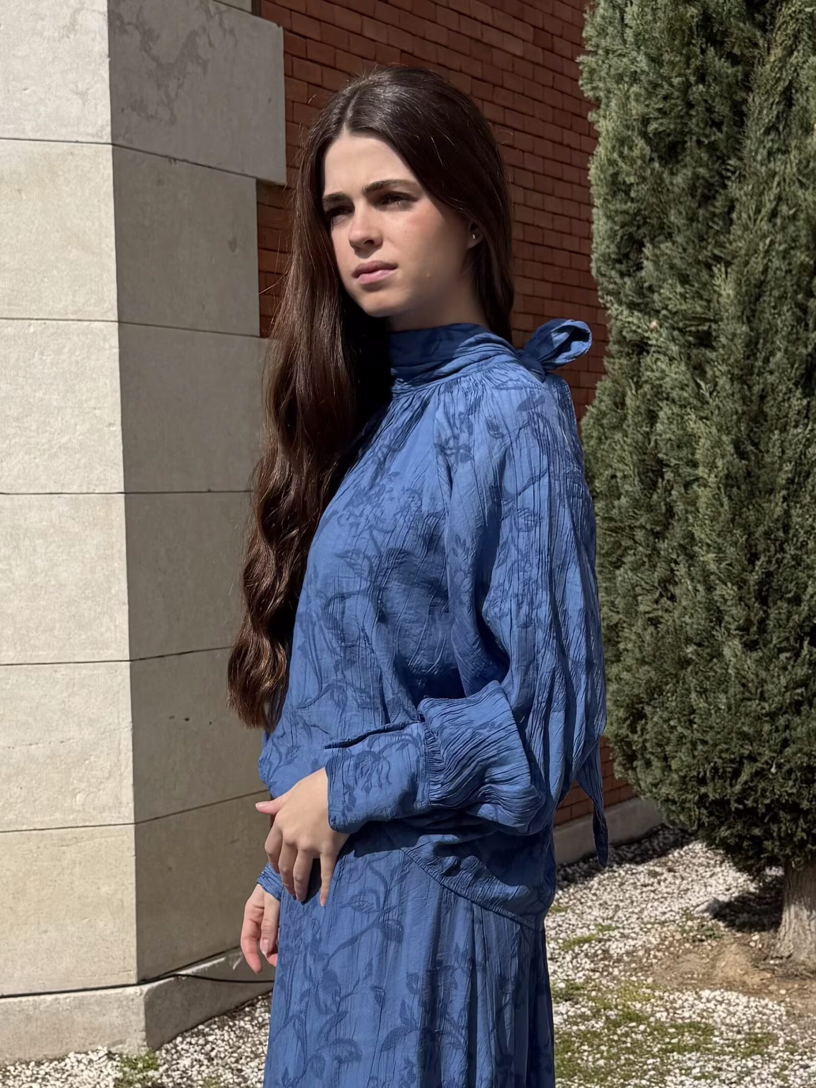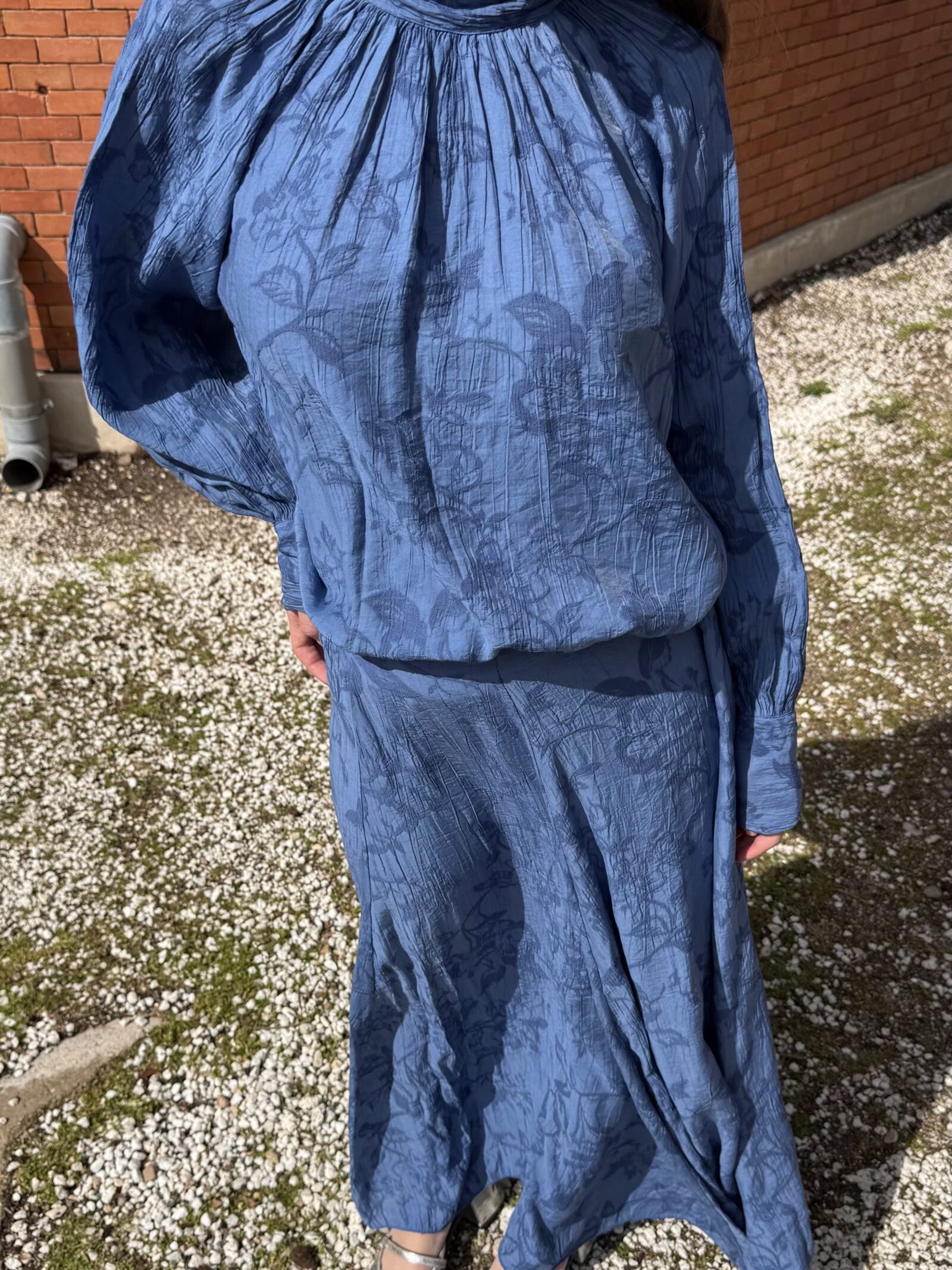 Falda Larga Volantes Estampada Turquesa y Chocolate