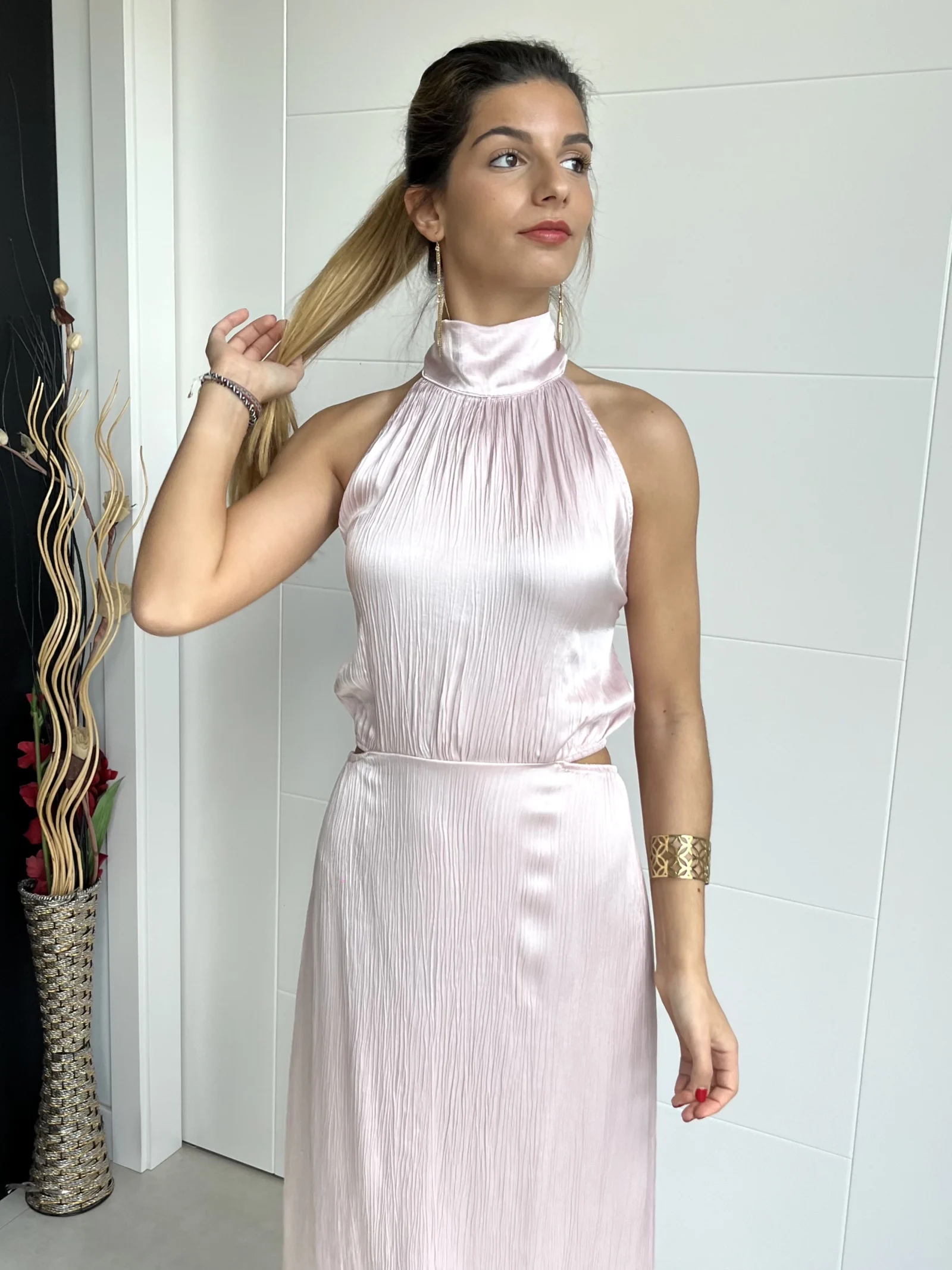 Vestido Midi Abertura Rosa Palo