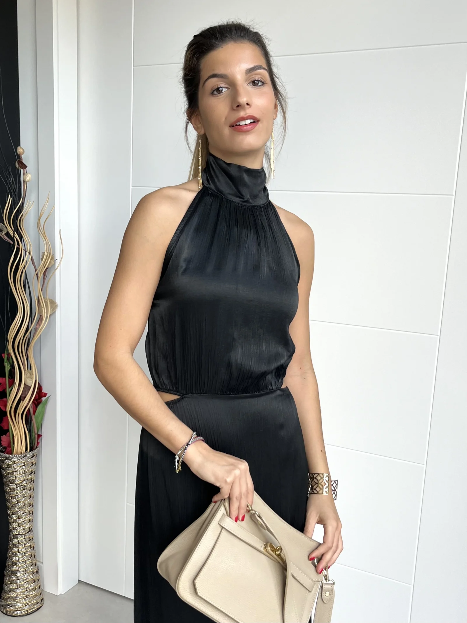 Vestido Midi Abertura Negro