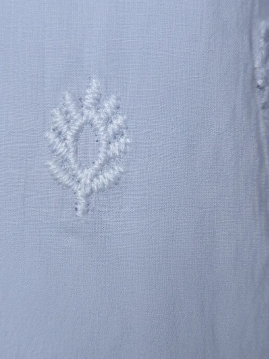 Blusa azul celeste de manga larga con cuello mao y cierre frontal con botones. Confeccionada en tejido ligero con sutil bordado en relieve, ofrece una caída fluida y cómoda.