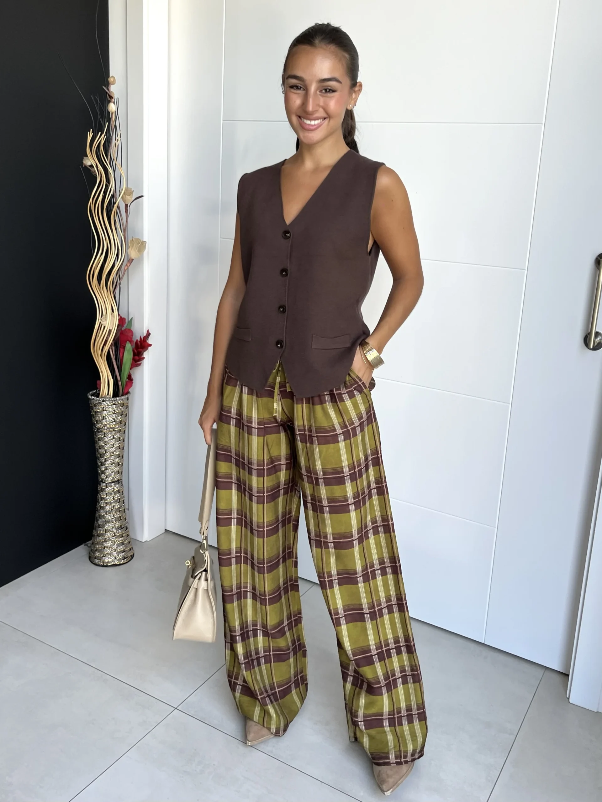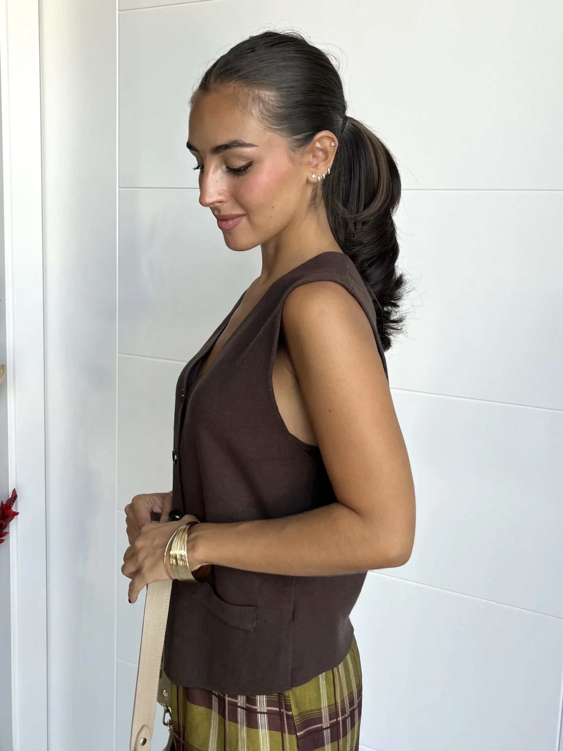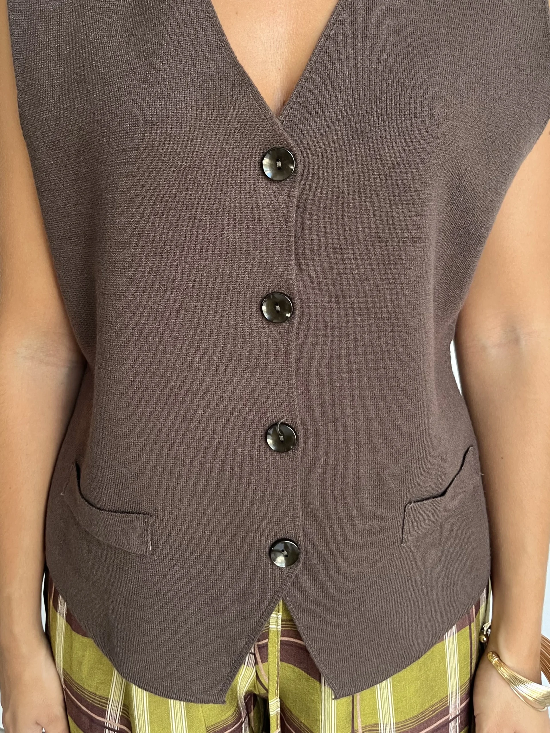 Chaleco Punto Botones Chocolate