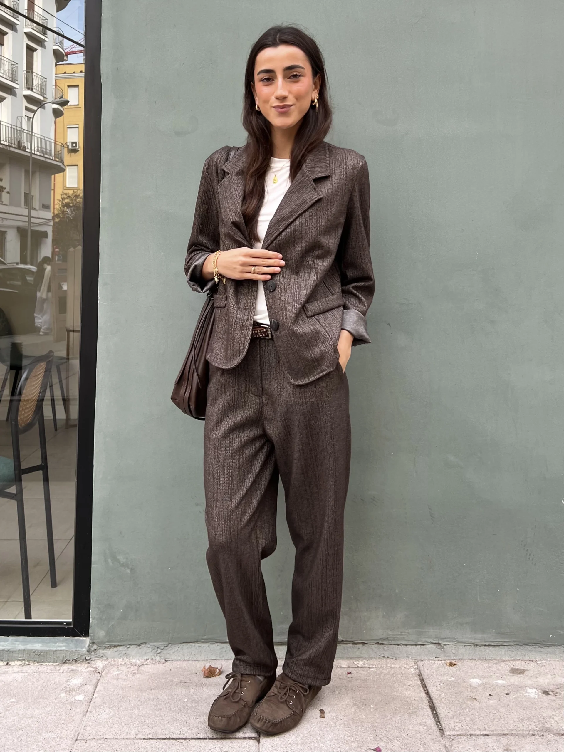 A juego con el Pantalón Traje Fluido con Textura Moka.
