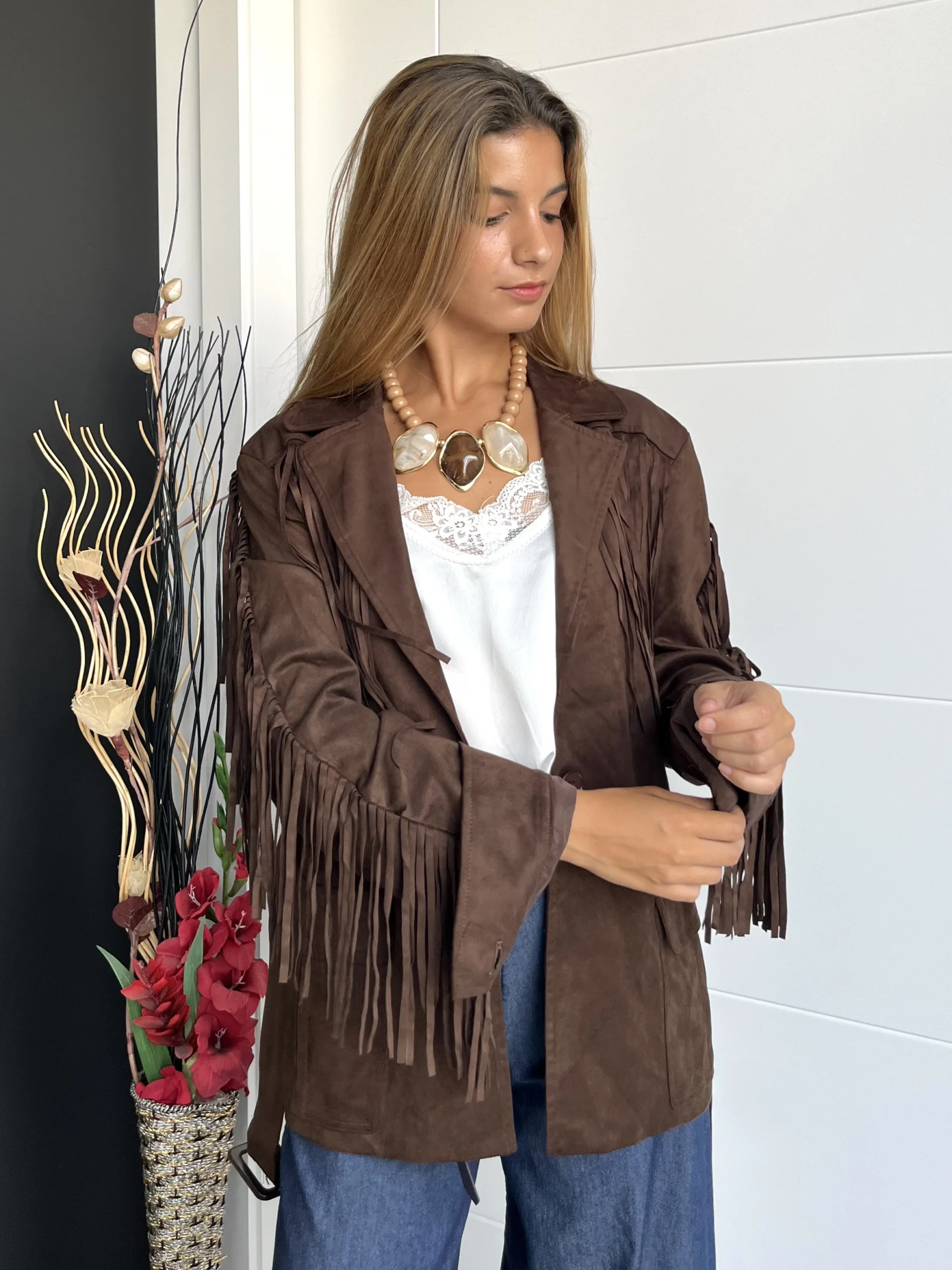 Chaqueta Flecos Marrón