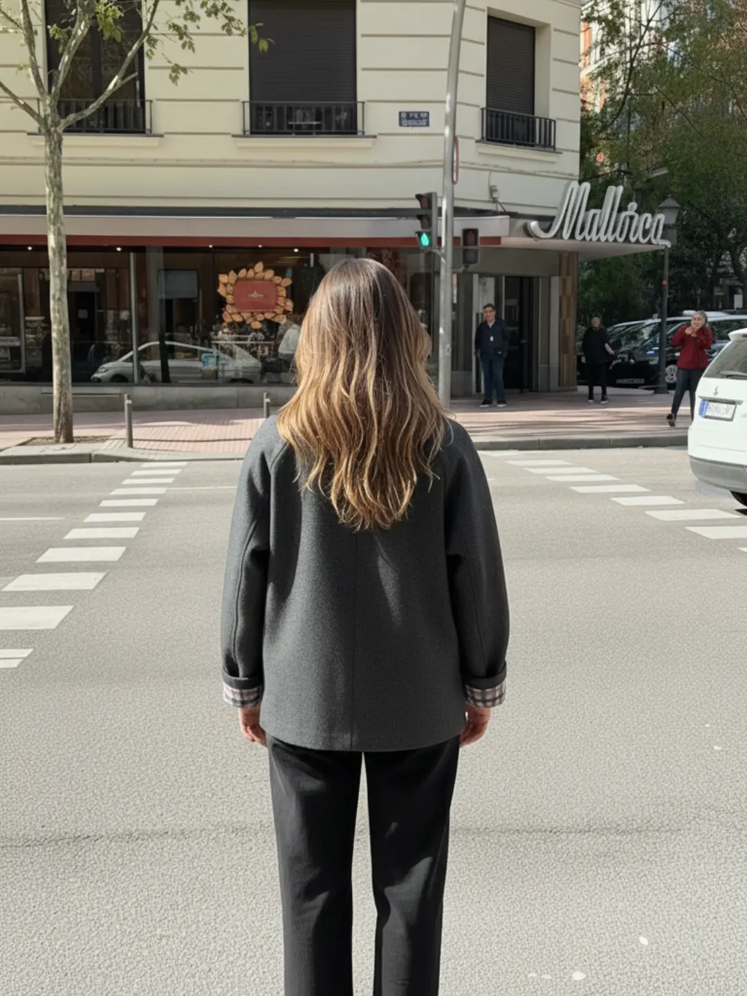 Chaqueta gris clásica con botones en la parte frontal. Interior de cuadros. Confeccionada en un tejido efecto lana, combina un aspecto suave con un color gris jaspeado, fácil de combinar con cualquier color.