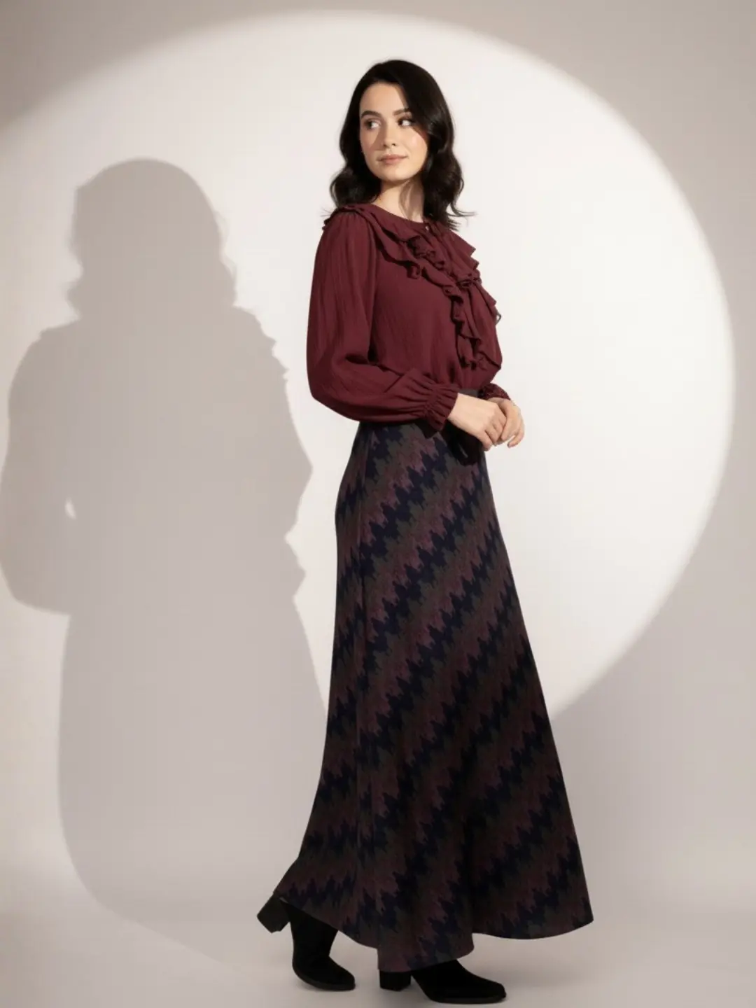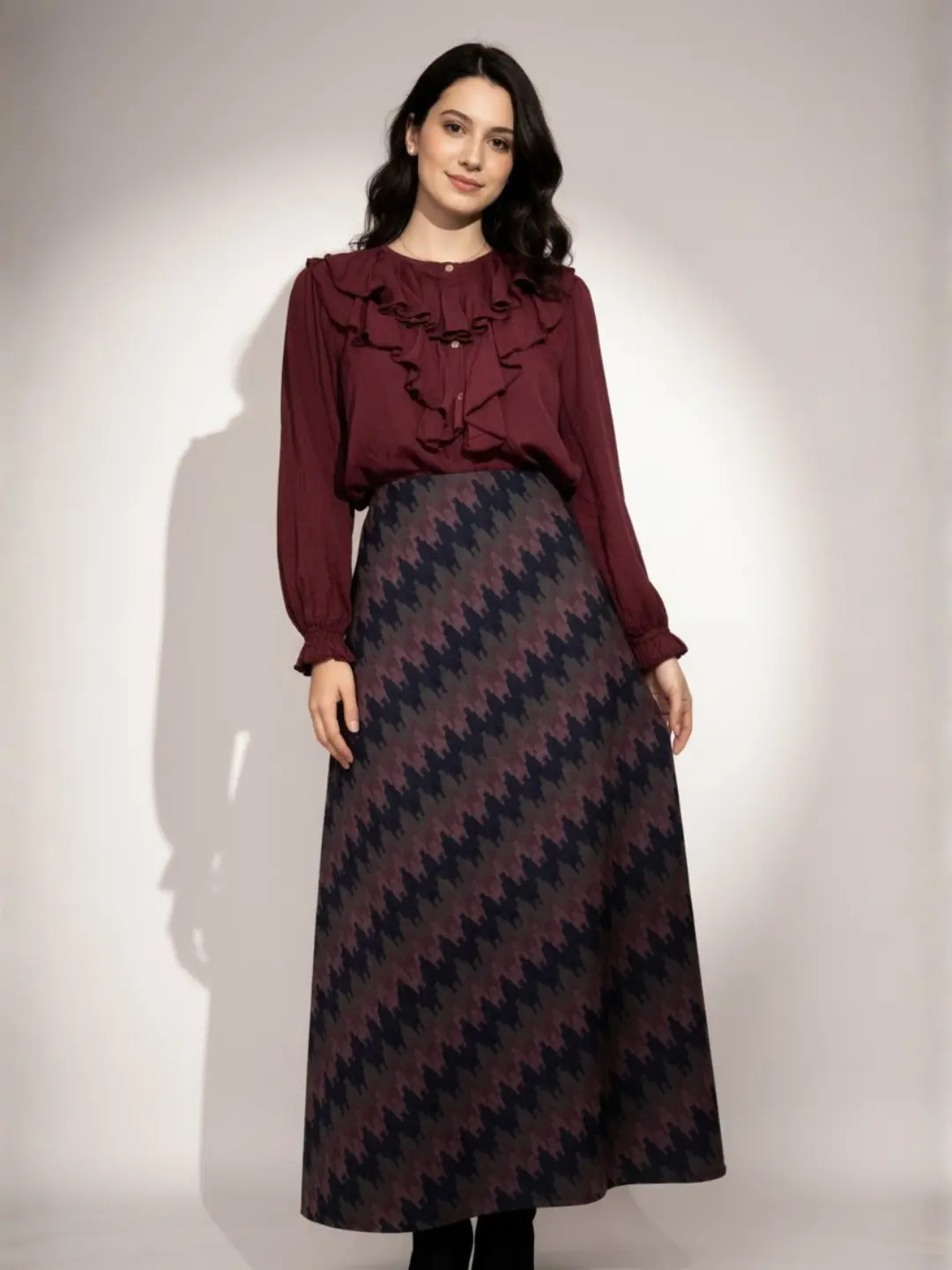 Falda Larga Geométrica Tonos Profundos