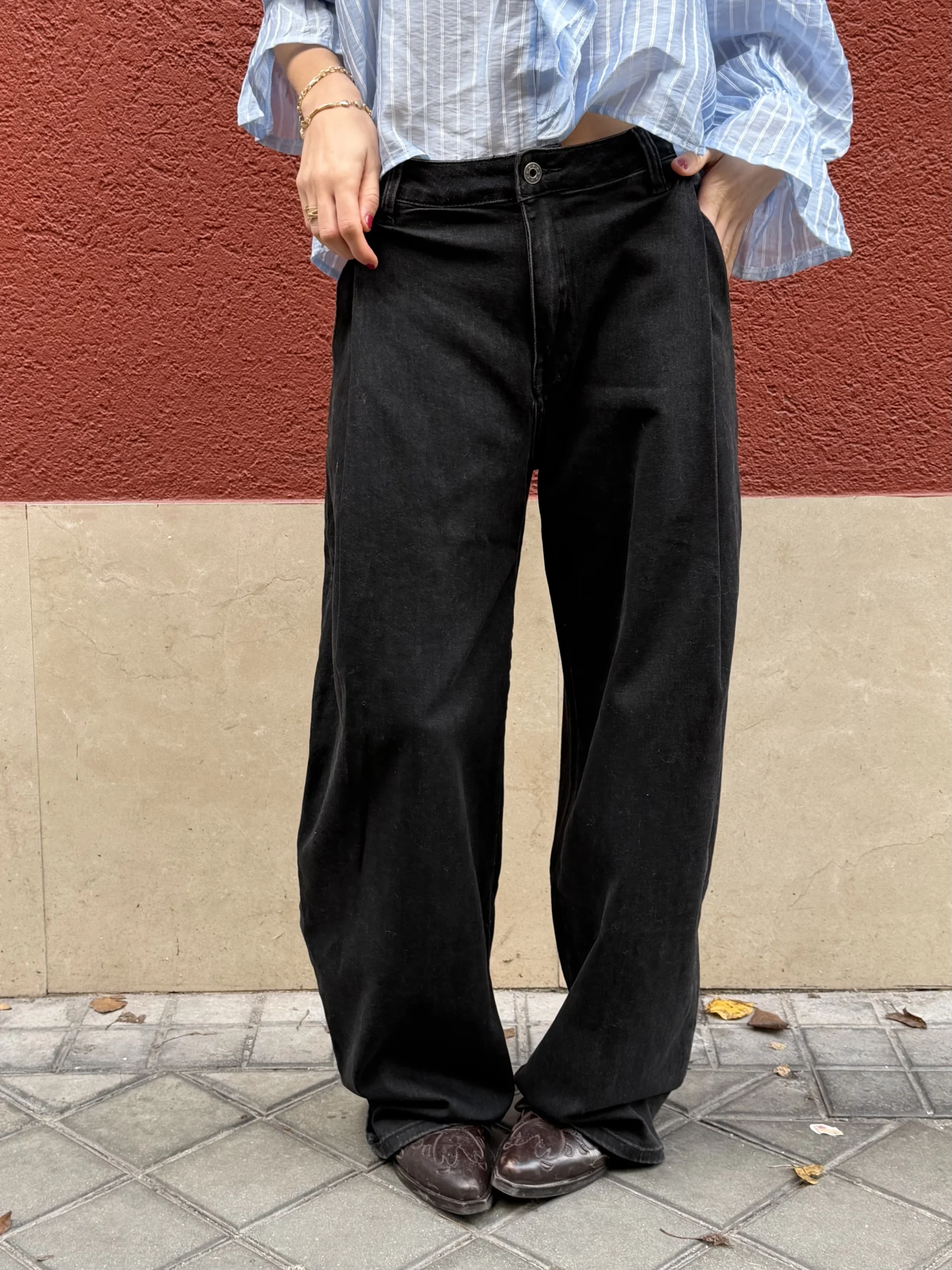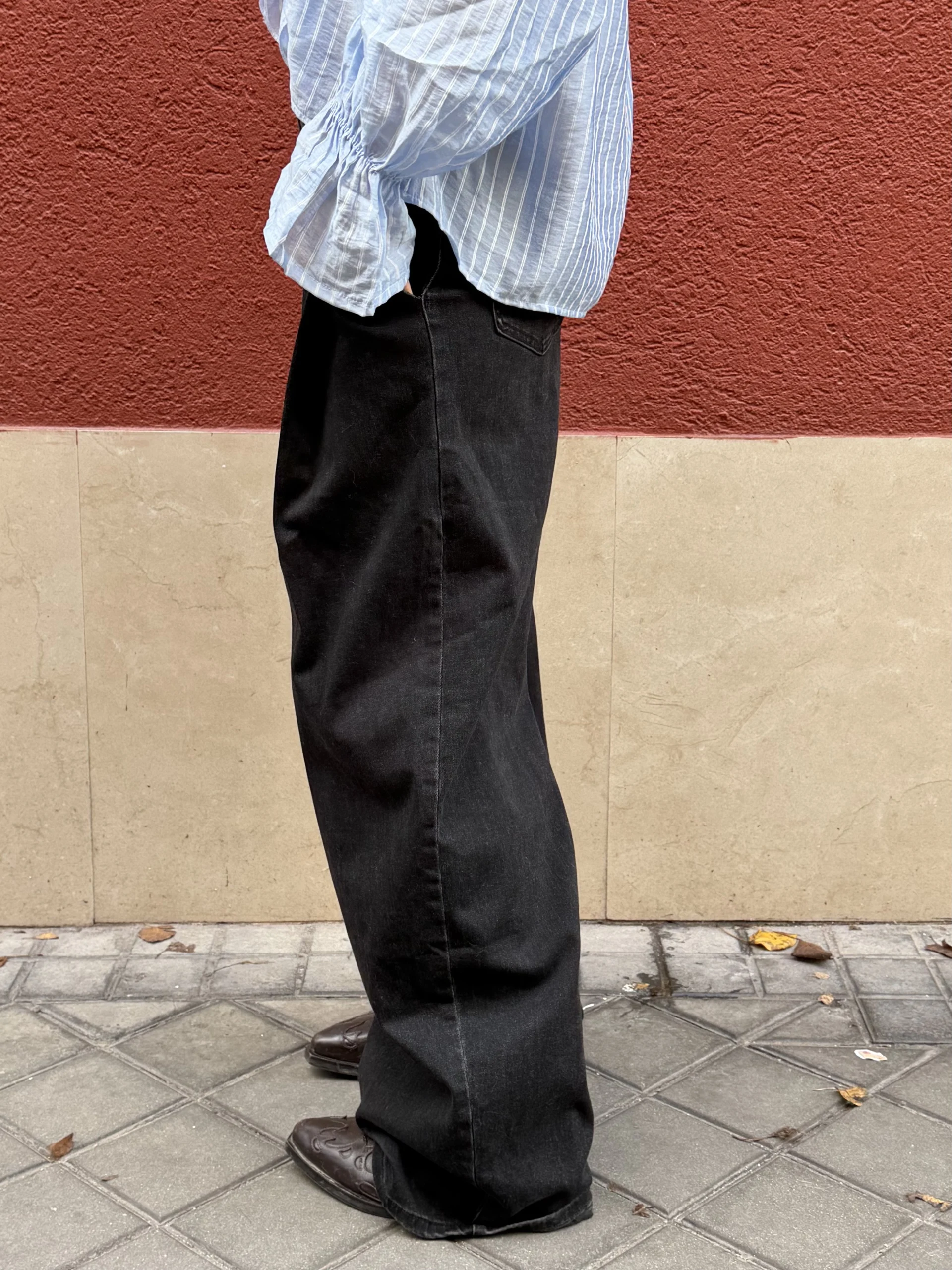 Pantalón Denim Negro Ancho