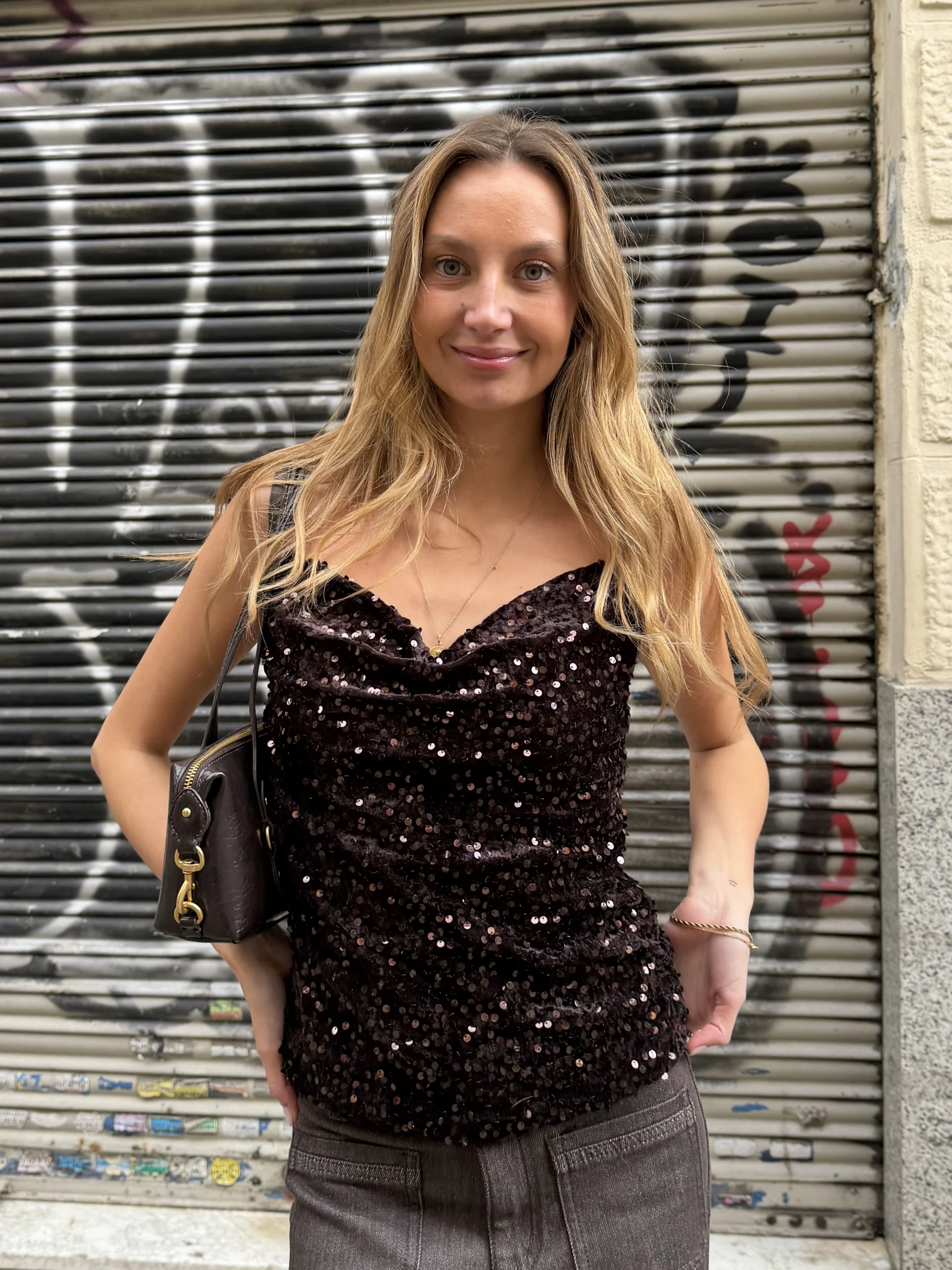 Pantalón recto gris topo de tiro medio-alto, tejido suave con ligera estructura y bolsillos frontales decorativos. Pierna amplia y caída natural que estiliza la figura. Versátil, cómodo y perfecto para crear looks urbanos, elegantes o de oficina.