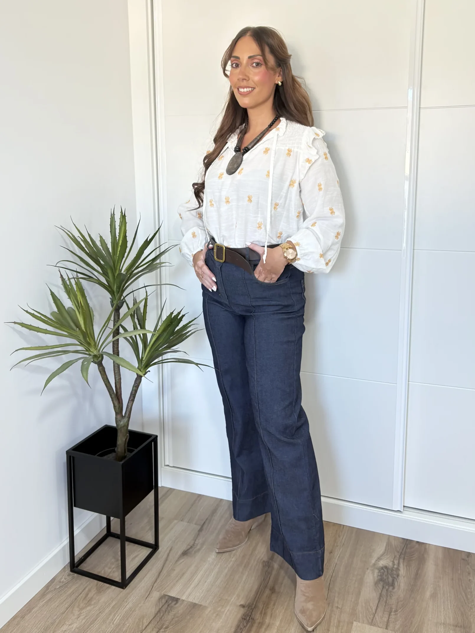 Vaquero oscuro elástico con cinturón es una prenda imprescindible esta temporada. Diseñado para adaptarse con comodidad, su corte recto y actual estiliza cualquier silueta, convirtiéndose en la base de un armario versátil. Incorpora un cinturón en tono marrón chocolate con hebilla dorada, detalle que realza la cintura y suma un toque elegante al conjunto. Una prenda práctica y con estilo, ideal para crear looks tanto casuales como más sofisticados