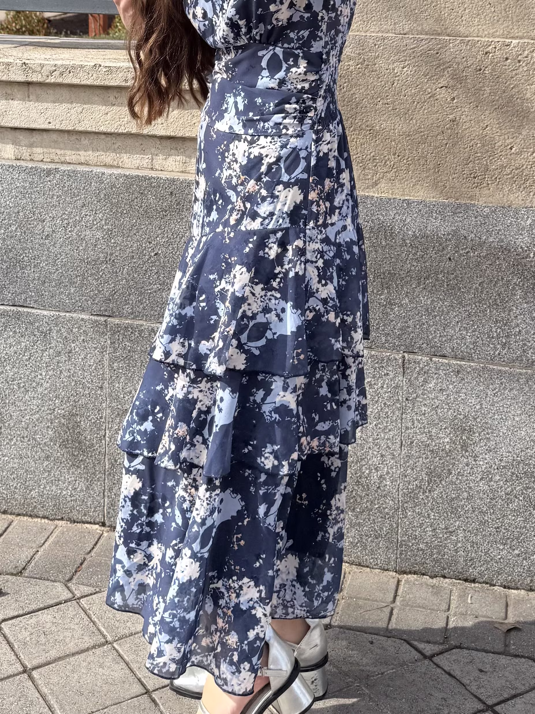Vestido Largo Volantes Gota Tonos Marinos