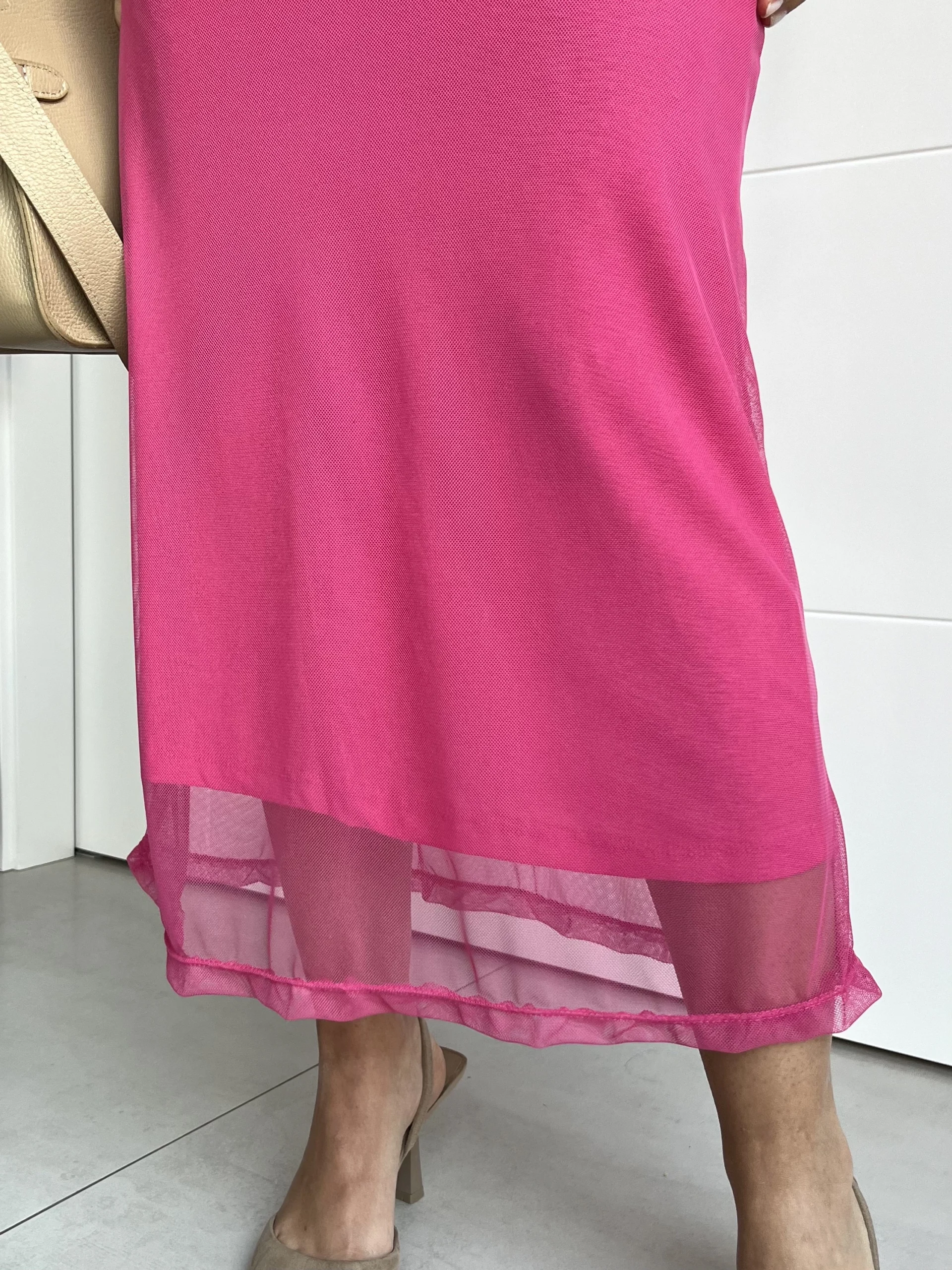 Vestido Midi Tul Liso Fucsia