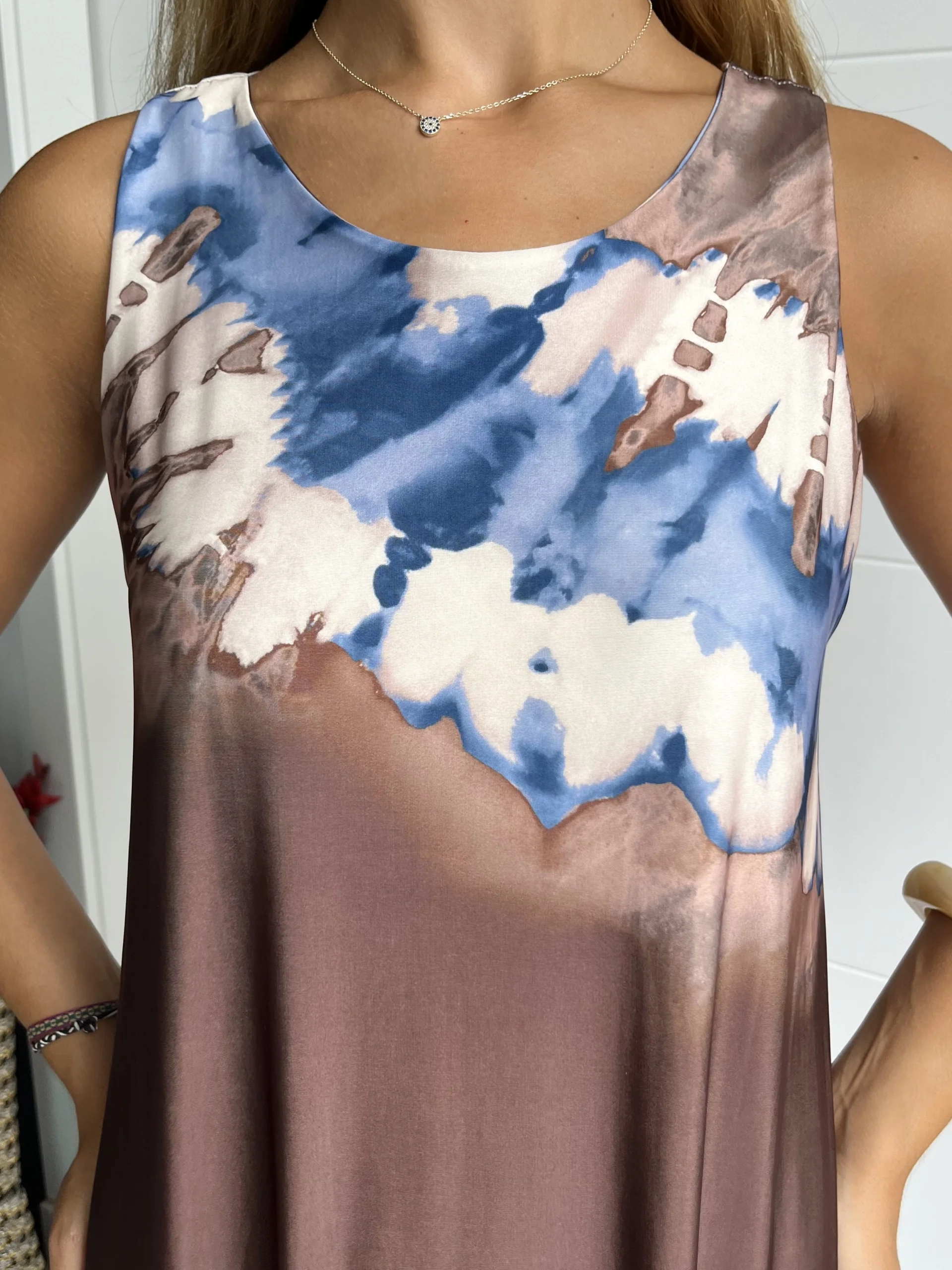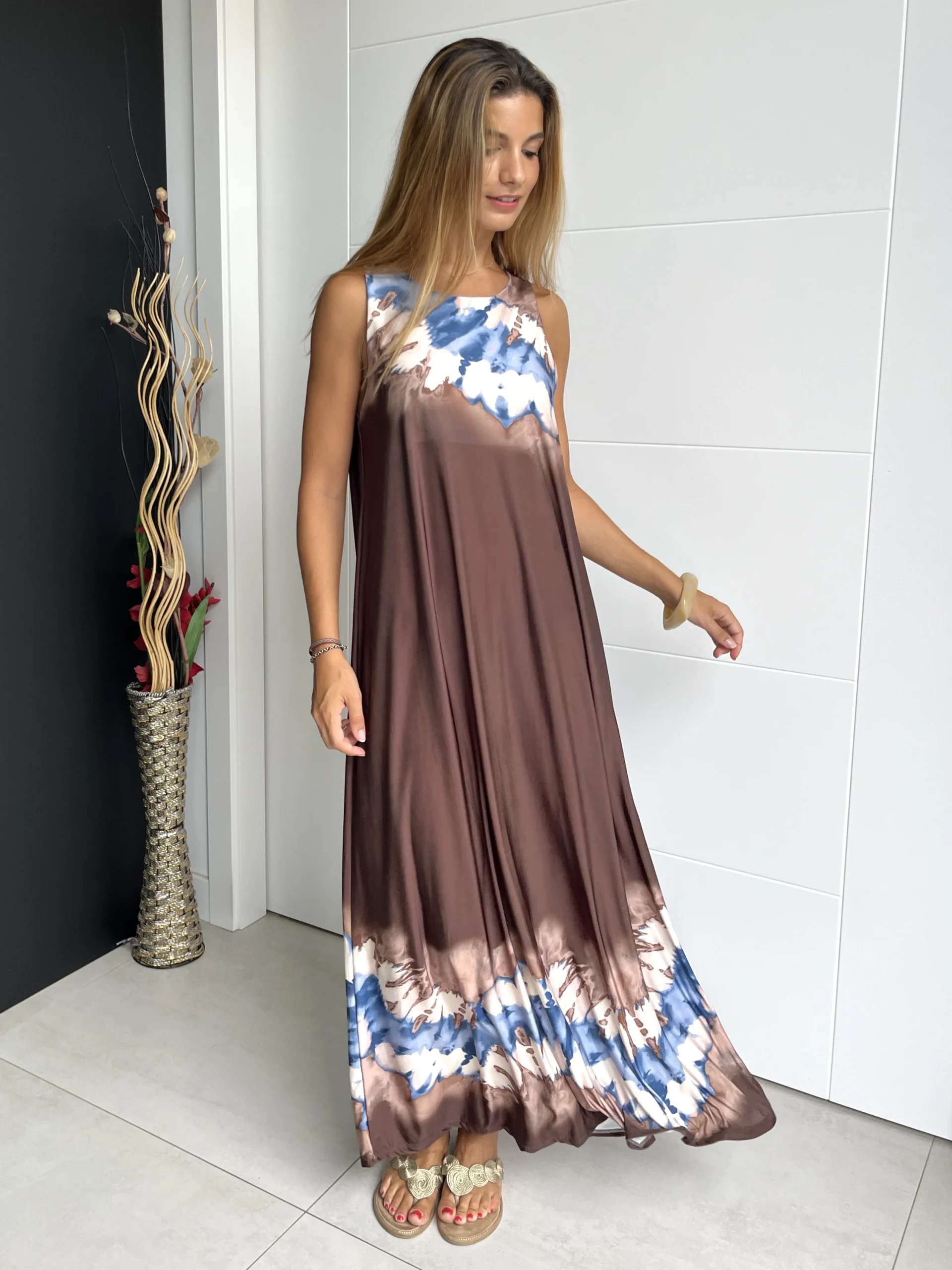 Vestido Tirantes Seda Fría Marrón Difuminado